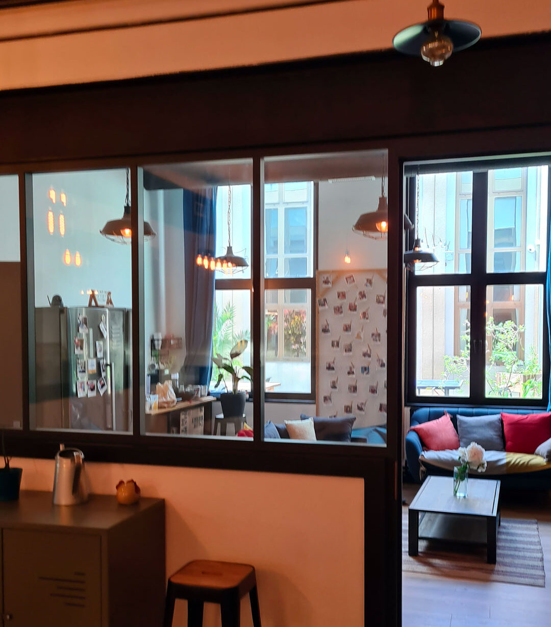 Basés à Metz, au sein du tiers-lieu BLIIIDA, nous disposons de 40 postes de travail répartis, dans deux espaces, pour une surface totale de 230 m². Un lieu de travail spacieux et convivial !